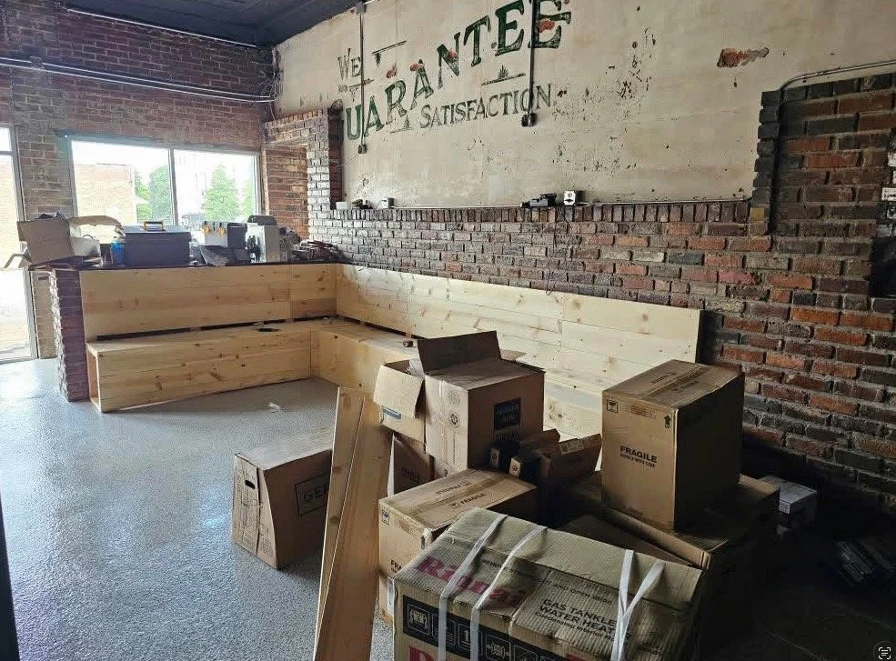 Josh, his dad, his brother, and his wife built the tables and benches. They painted the space and refinished the bar. Electrical and plumbing had to be hired out, but anything they could do themselves, they did.